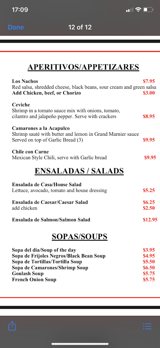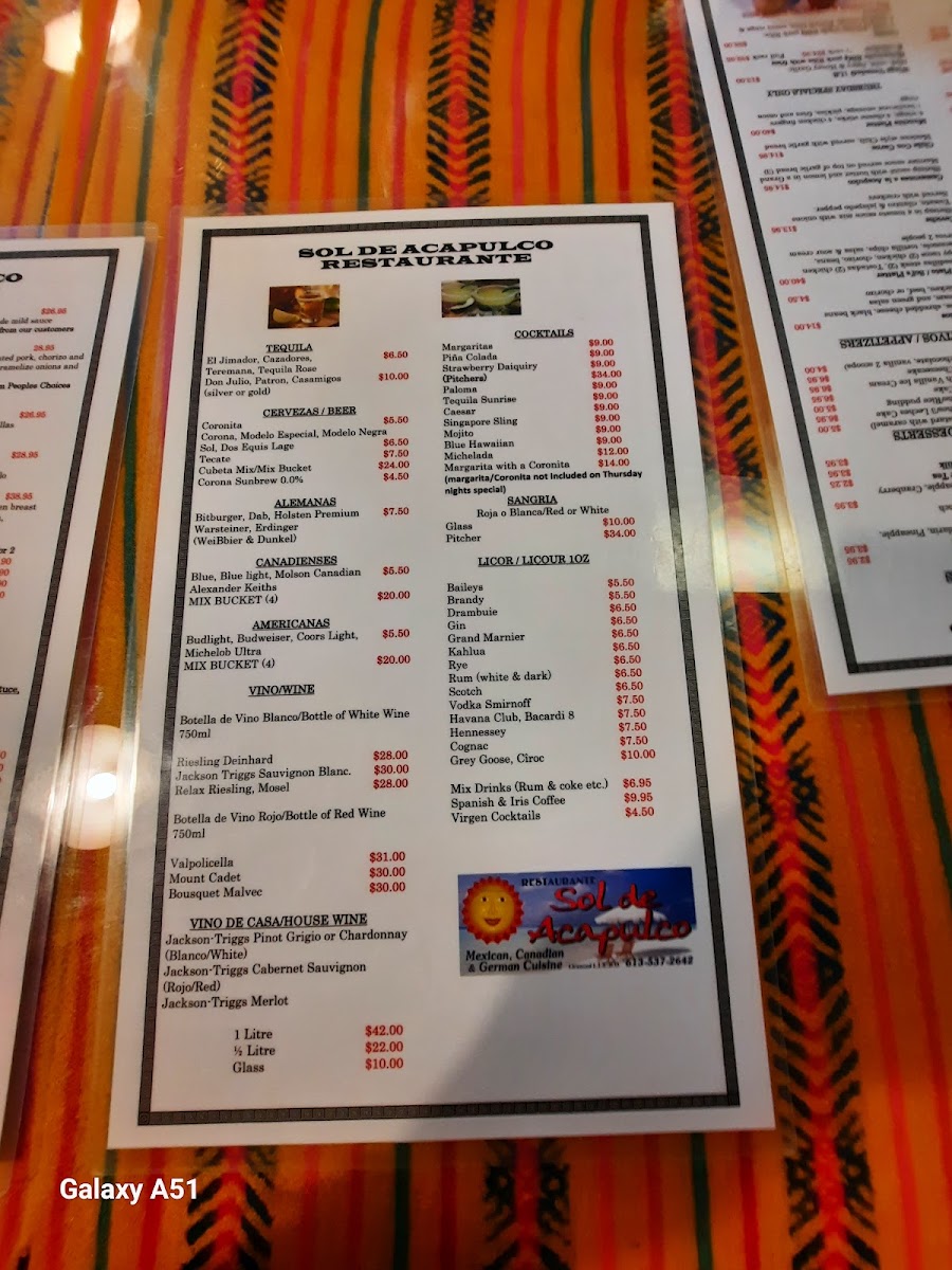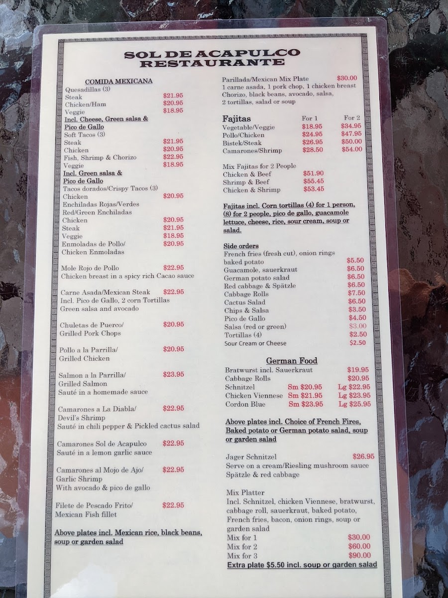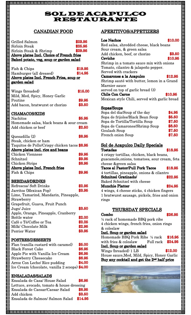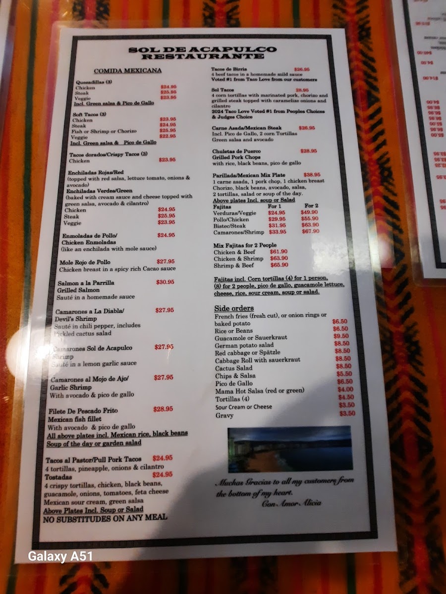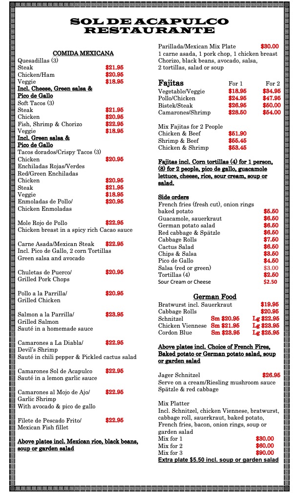 Sol De Acapulco Restaurante Menu